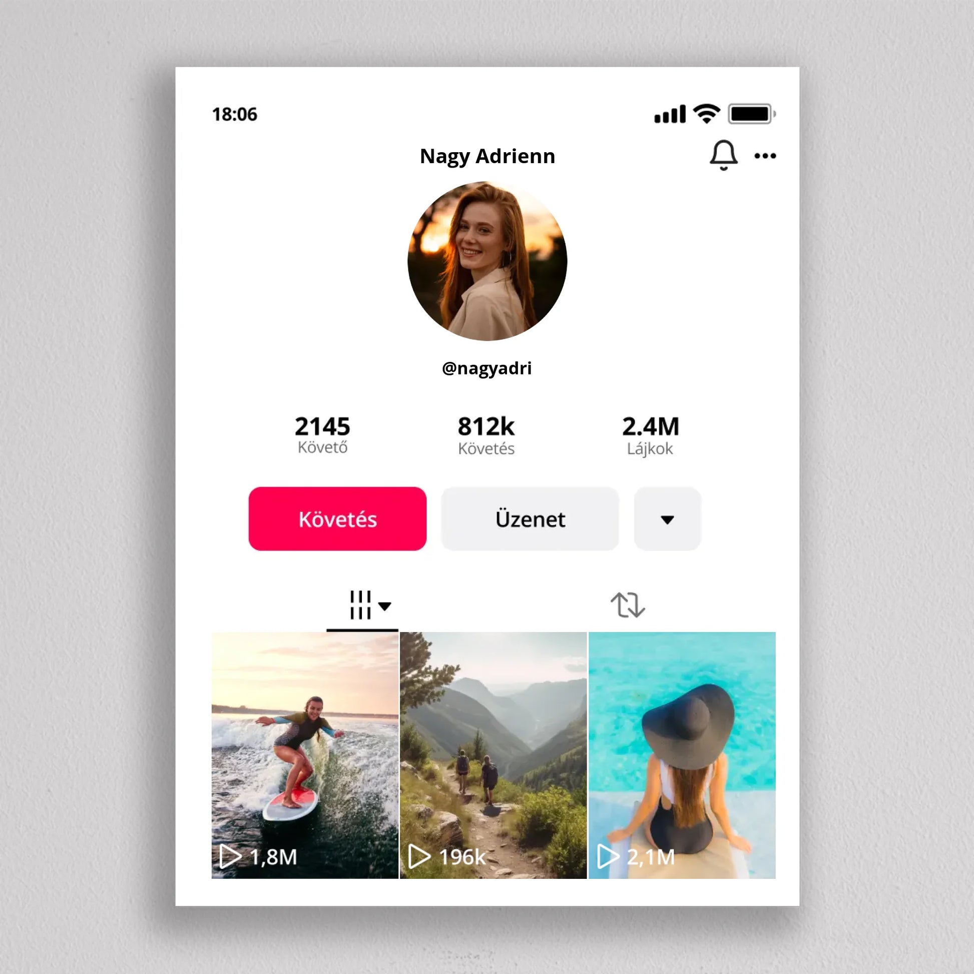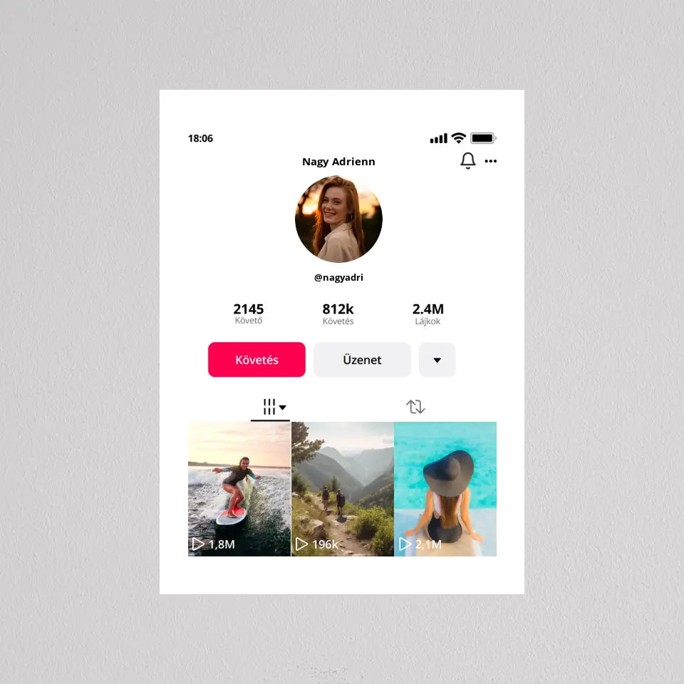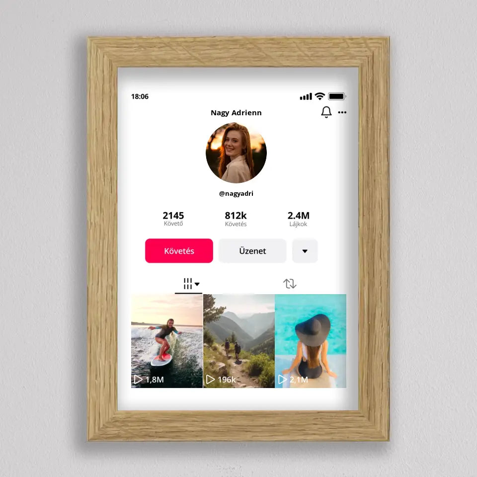 A TikTok stílusú fotó kollázs egyedi és modern ajándék, amely tökéletes választás a közösségi média rajongóinak. Ez a különleges kollázs egy TikTok profil dizájnját követi, lehetővé téve, hogy a saját vagy egy szeretett személy profiljának legemlékezetesebb pillanatai bekeretezve díszíthessék otthonát. A kollázs személyre szabható: a profil név és videók mind testreszabhatók, így ez az ajándék nemcsak esztétikus, hanem rendkívül személyes is. Ideális választás születésnapra, évfordulóra, vagy bármely különleges alkalomra, ahol egyedi és figyelemfelkeltő ajándékra van szükség.
