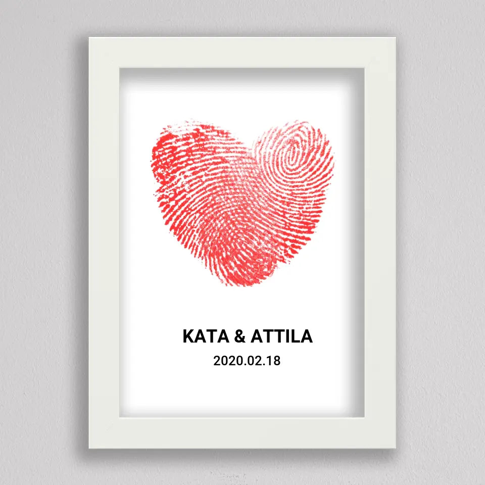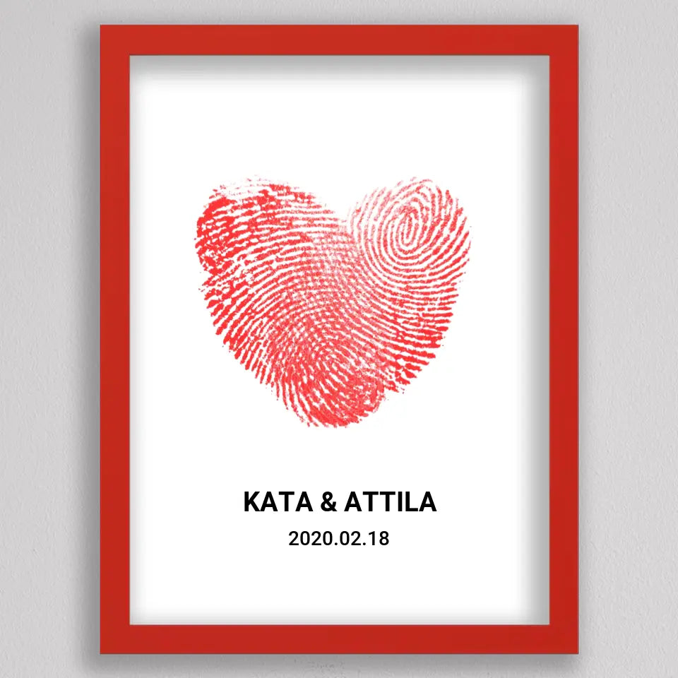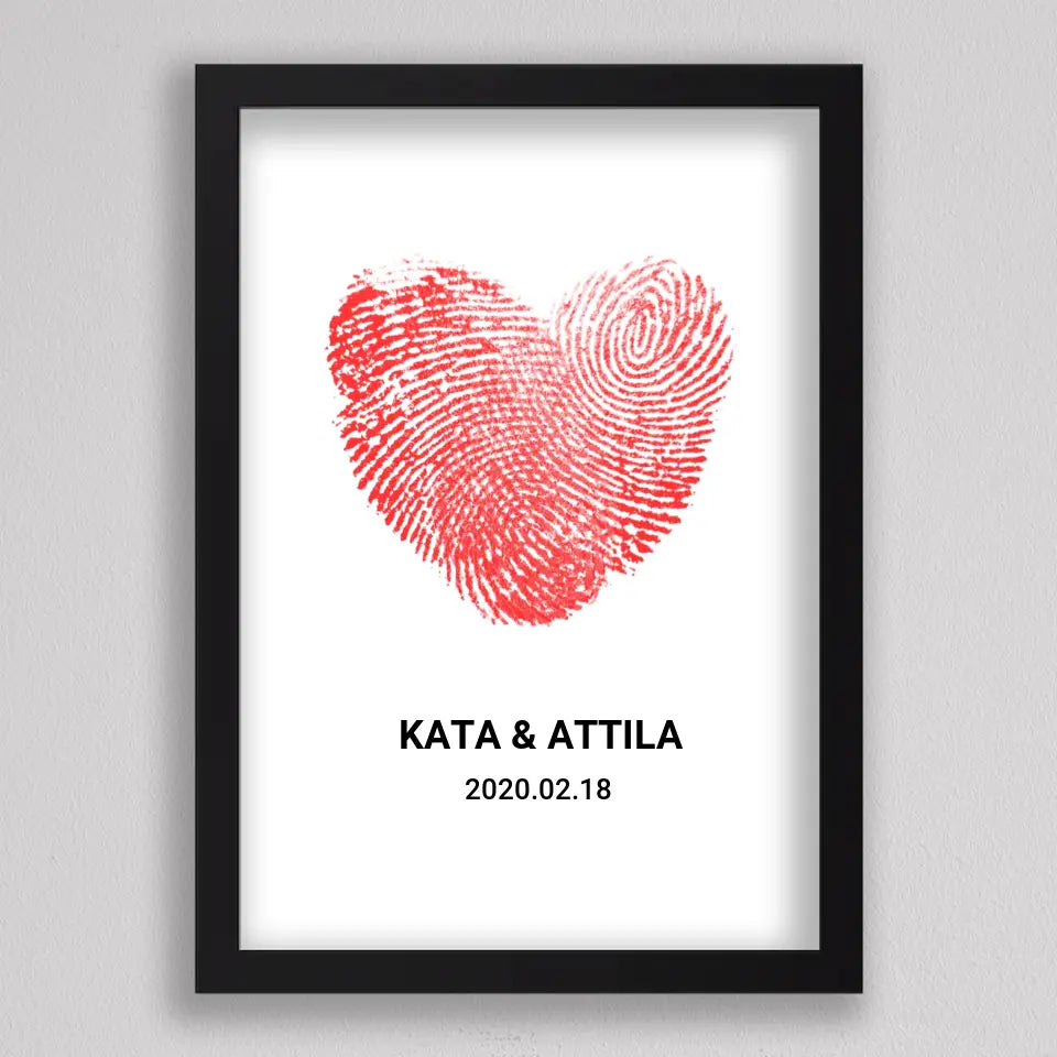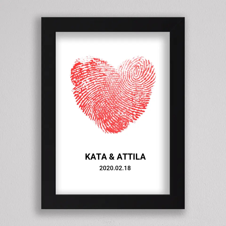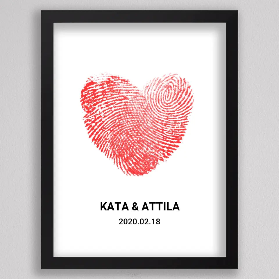 A Szerelmes Ujjlenyomat Szív illusztráció egy igazán különleges és személyre szabható ajándék, amely tökéletes választás szerelmesek, házaspárok vagy akár családok számára. Ez az illusztráció két ujjlenyomatból alkot szívformát, szimbolizálva a szeretet és az összetartozás különleges kötelékét. A termék hat választható színnel rendelkezik, így könnyedén személyre szabható az ízlésednek megfelelően. Ideális évfordulóra, esküvői ajándéknak, vagy akár Valentin-napra. Az elegáns és modern dizájn bármely otthon dísze lehet, emlékeztetve a különleges pillanatokra.