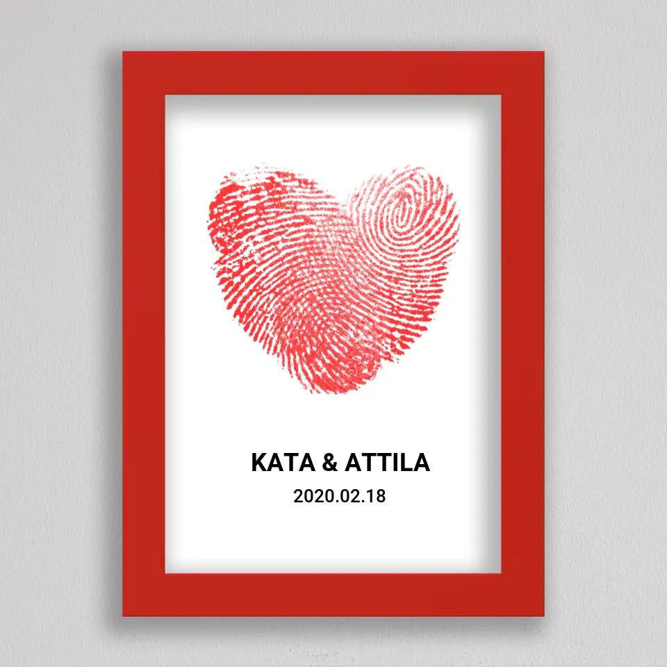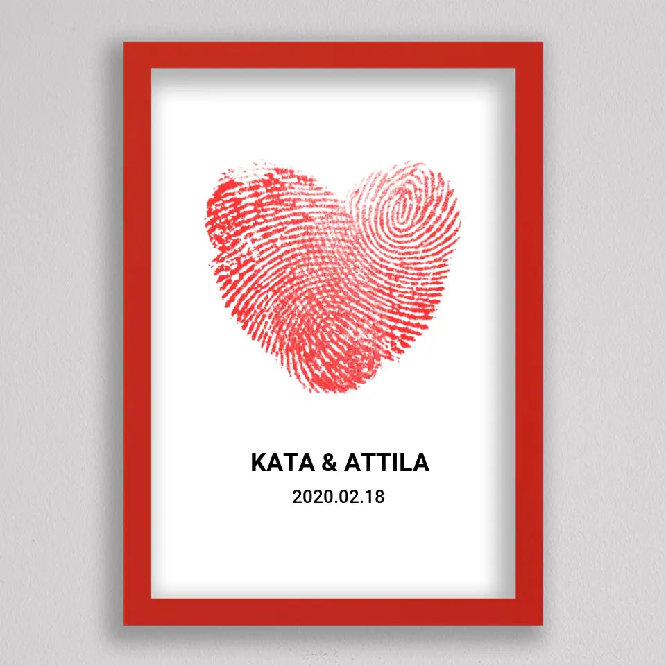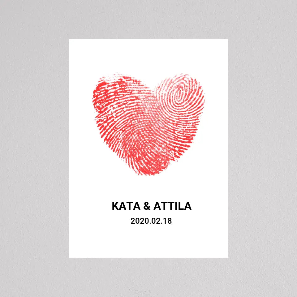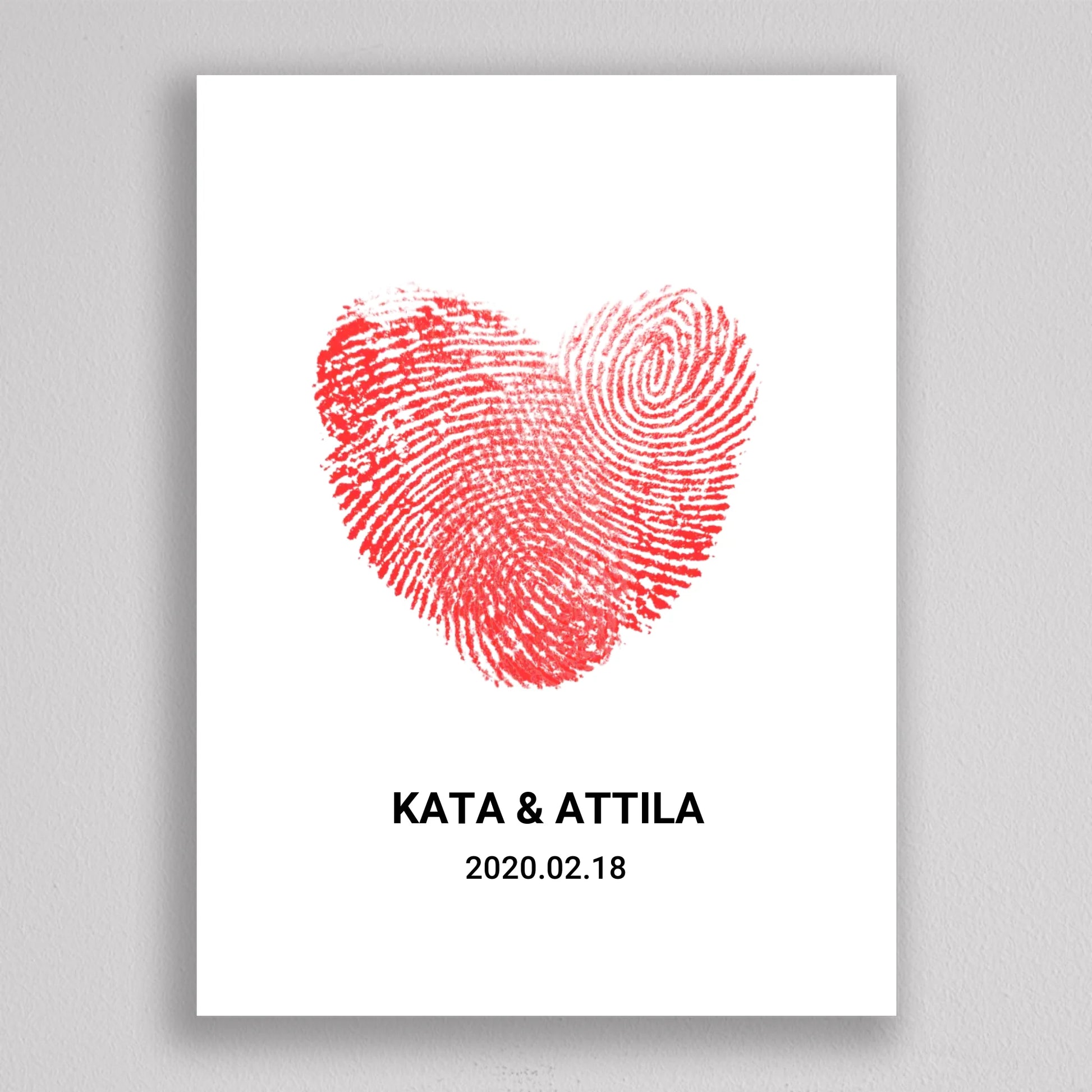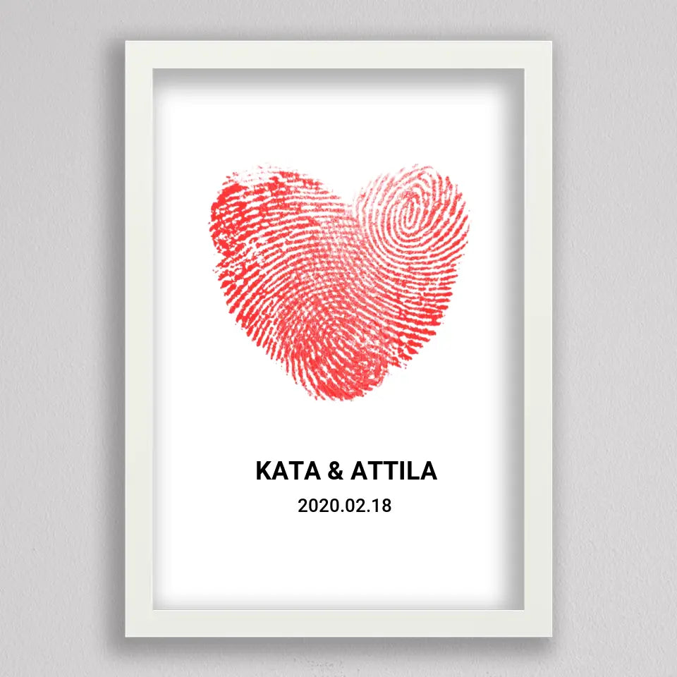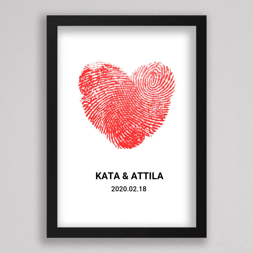 A Szerelmes Ujjlenyomat Szív illusztráció egy igazán különleges és személyre szabható ajándék, amely tökéletes választás szerelmesek, házaspárok vagy akár családok számára. Ez az illusztráció két ujjlenyomatból alkot szívformát, szimbolizálva a szeretet és az összetartozás különleges kötelékét. A termék hat választható színnel rendelkezik, így könnyedén személyre szabható az ízlésednek megfelelően. Ideális évfordulóra, esküvői ajándéknak, vagy akár Valentin-napra. Az elegáns és modern dizájn bármely otthon dísze lehet, emlékeztetve a különleges pillanatokra.