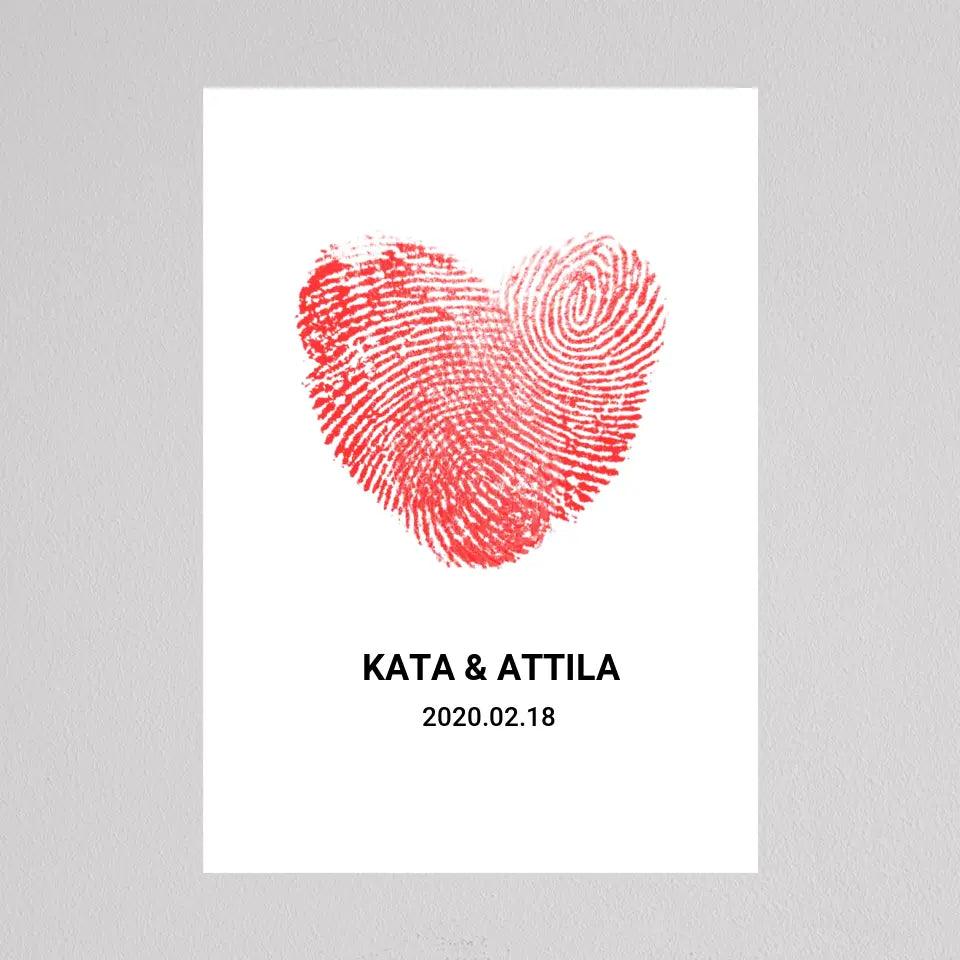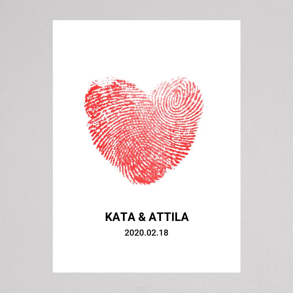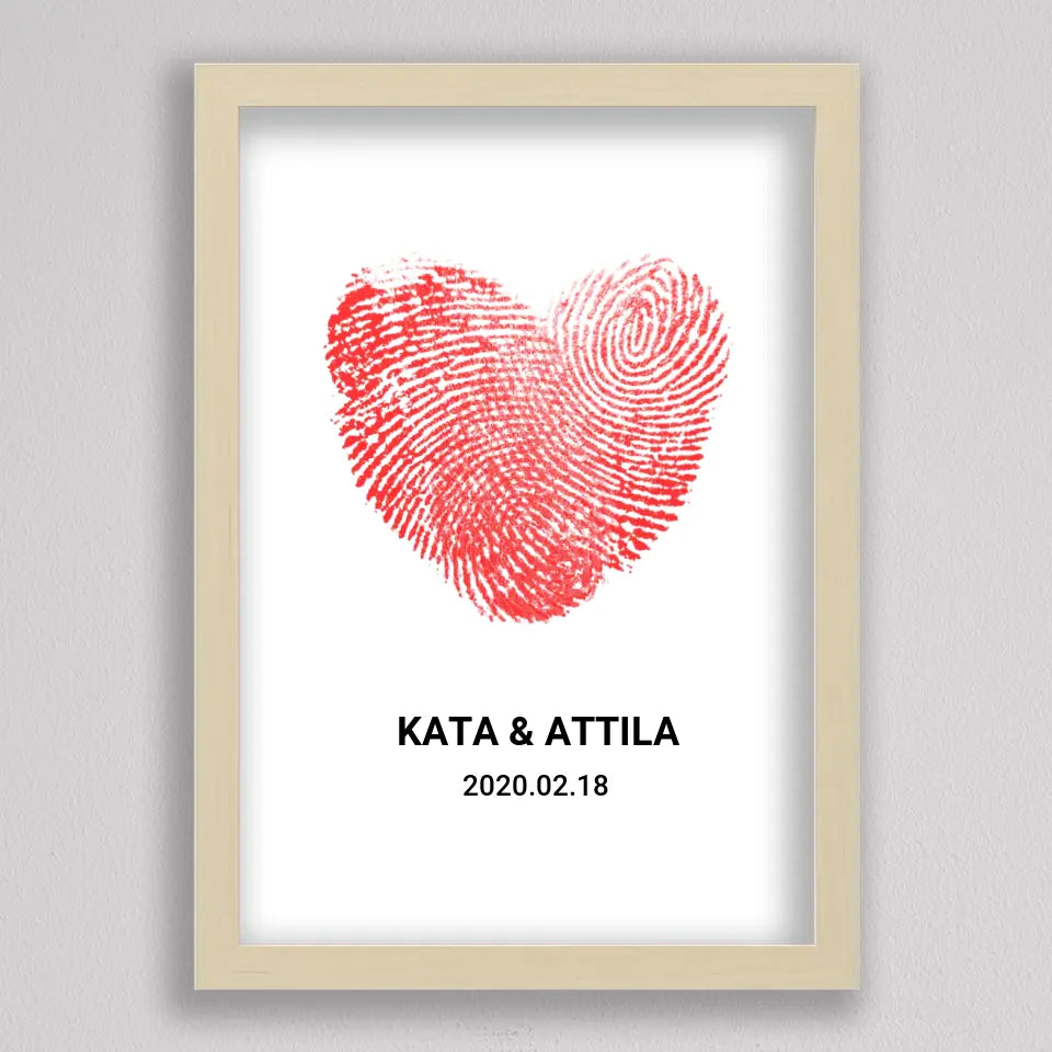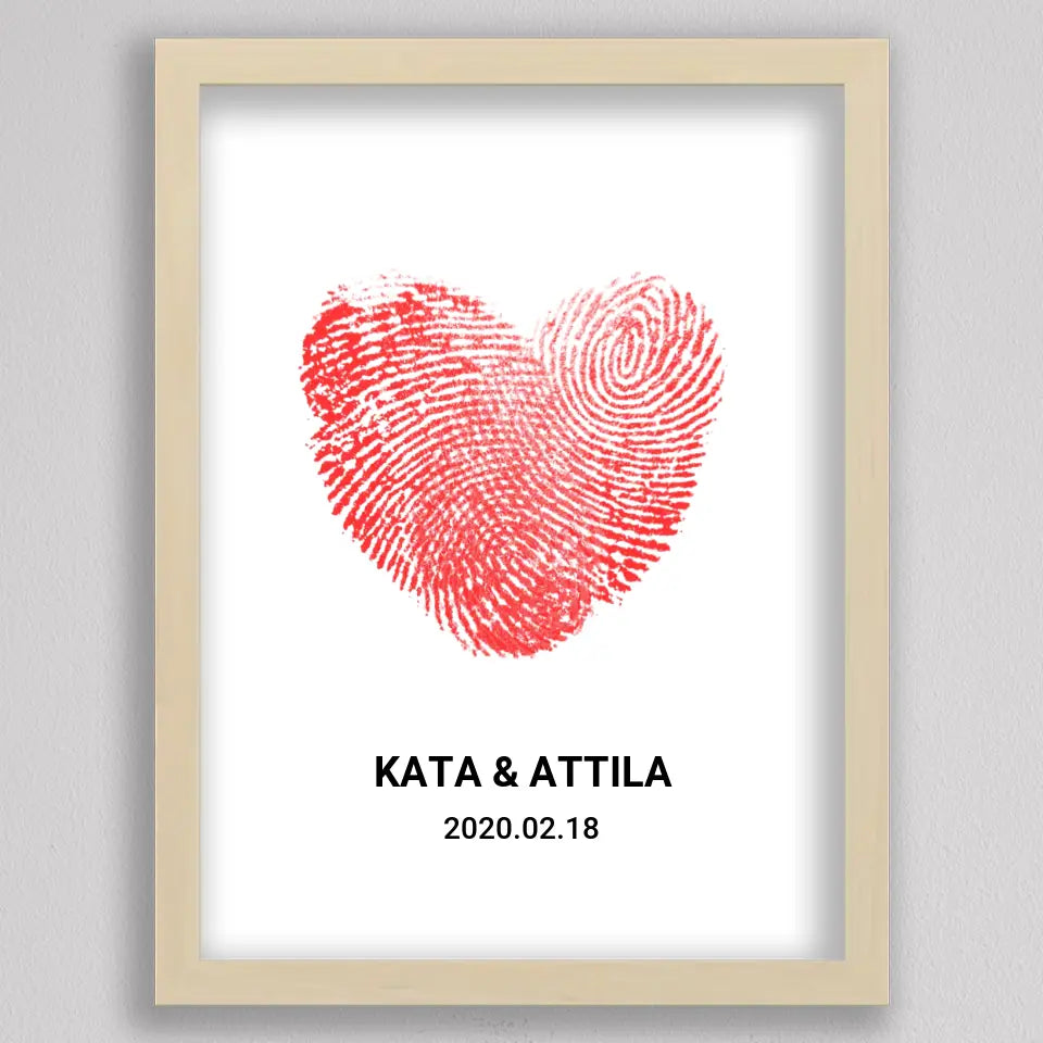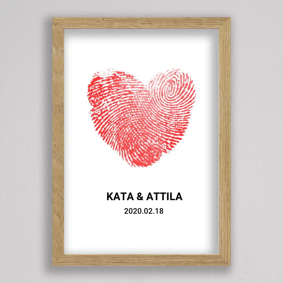 A Szerelmes Ujjlenyomat Szív illusztráció egy igazán különleges és személyre szabható ajándék, amely tökéletes választás szerelmesek, házaspárok vagy akár családok számára. Ez az illusztráció két ujjlenyomatból alkot szívformát, szimbolizálva a szeretet és az összetartozás különleges kötelékét. A termék hat választható színnel rendelkezik, így könnyedén személyre szabható az ízlésednek megfelelően. Ideális évfordulóra, esküvői ajándéknak, vagy akár Valentin-napra. Az elegáns és modern dizájn bármely otthon dísze lehet, emlékeztetve a különleges pillanatokra.